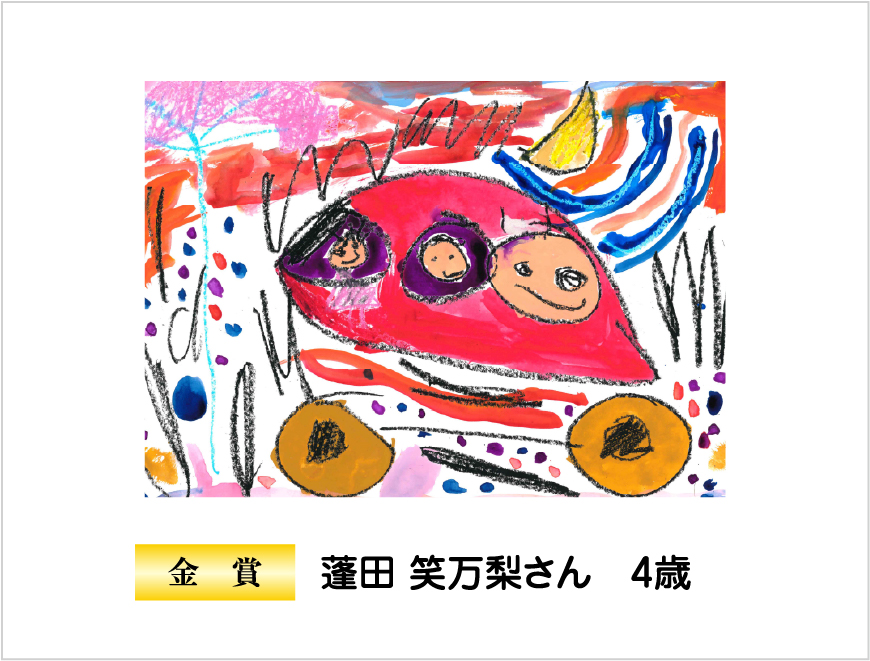 幼い頃描いた絵が、押し入れの中から見つかりました。私自身の絵をいちまい一枚観ていると、小学生の頃「未来」をテーマに描いた絵もありました。空を飛ぶ自動車、地面を掘る自動車が描かれていました。ベッキオ・バンビーノ絵画コンテストに応募する子どもたちの絵のように、夢の自動車が表現されていました。今回の受賞された作品は「ぼくのわたしの夢の自動車」の中に“未来”を夢見る作品がありました。作者の思い描く、輝く未来の生活を重ねてみてしまいました。また理想の車をデザインした作品も選出されました。描くことは理想を形にすること。子どもの豊かで逞しい造形の力を感じさせていただきました。
